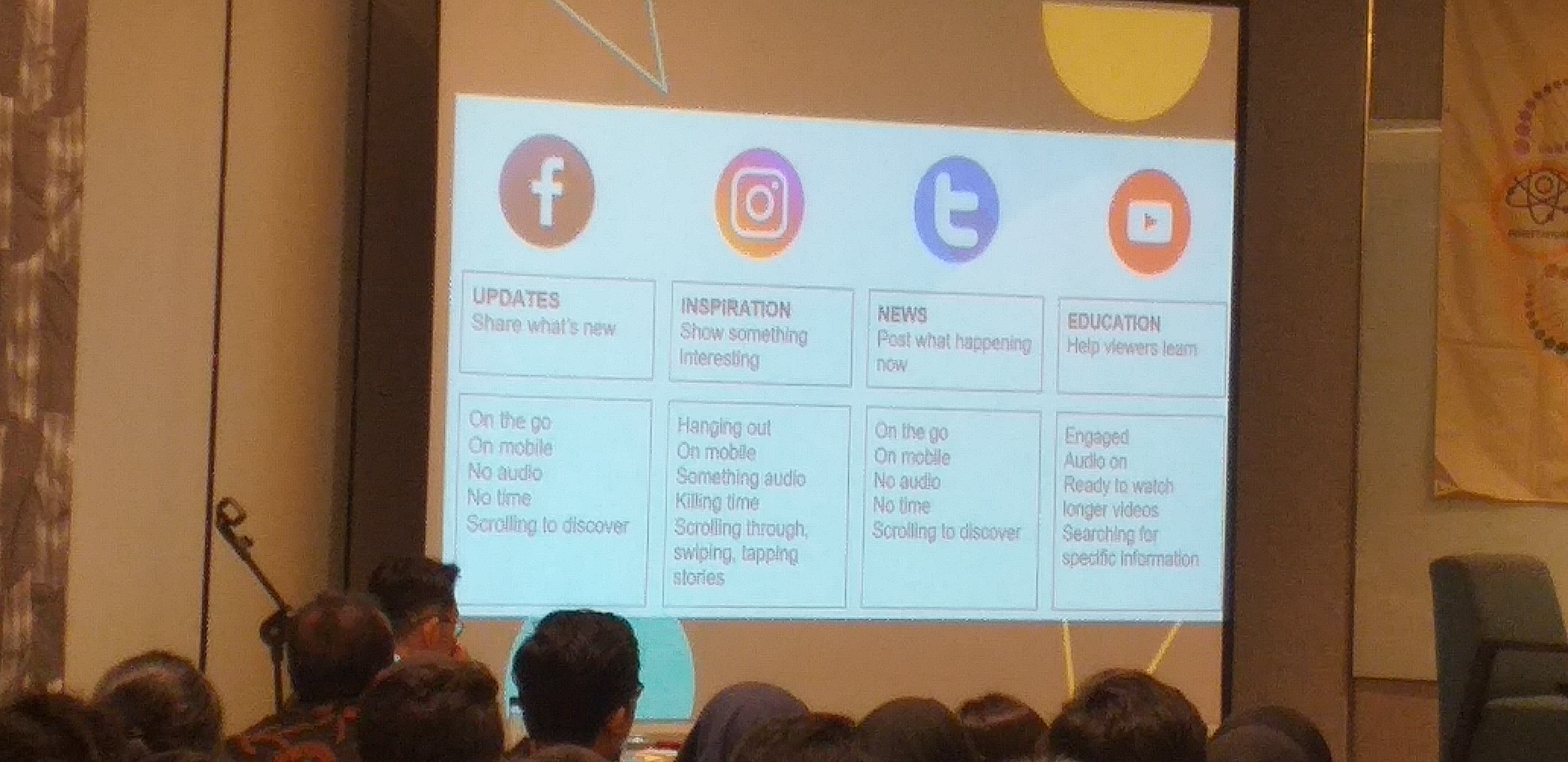 Tri dengan tegas menyampaikan bahwa, “Facebook will be all video by 2021.” Kemudian Tri menjelaskan karakteristik dari tiap-tiap platform media sosial.