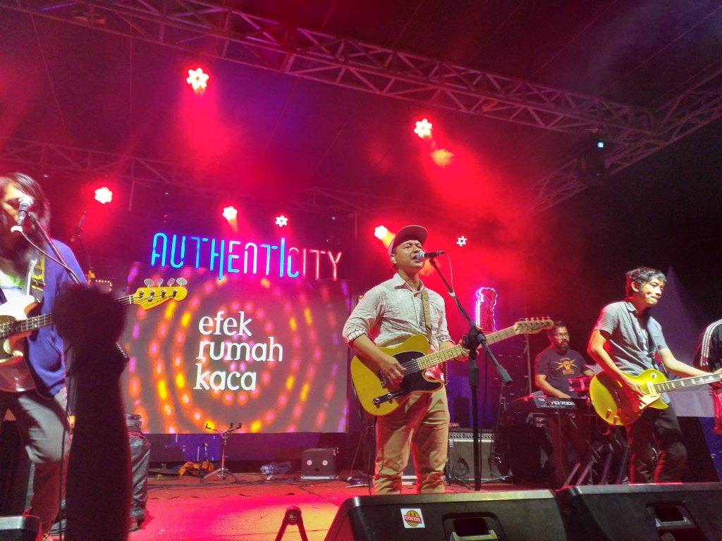 Dewantara, Serang – Efek Rumah Kaca (ERK) untuk kedua kalinya hadir di wilayah Serang, Banten, pada Ahad (28/7/2019) di Koeno Terminal Point, Kramatwatu, Kabupaten Serang. Konser digelar dalam rangkaian program Authenticity 2019. Dan sebagai band pembuka, ada Valiant Kullo dari Kota Cilegon.