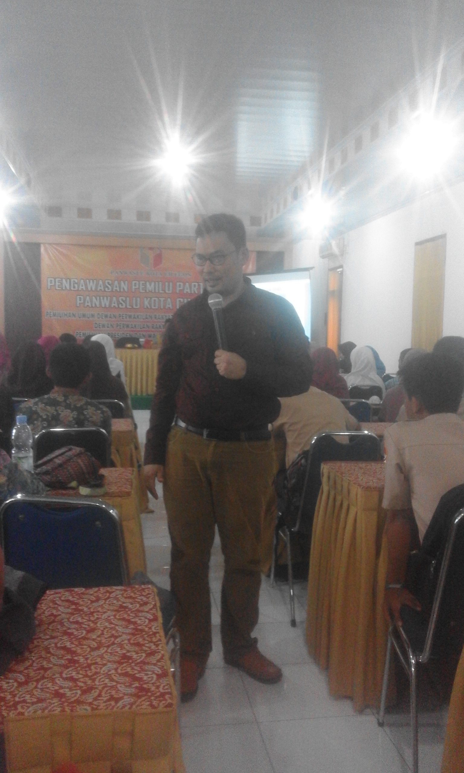 Ketua Panwaslu Kota Cilegon Siswadi dalam sambutannya menyampaikan, “tujuan dari kegiatan ini adalah untuk menyampaikan informasi, sehingga para pemilih terutama pemilih pemula menjadi mengetahui dan menjadi pemilih yang cerdas.” Ia melanjutkan, “sehingga adik-adik  SMA-SMK-MA menjadi lebih melek terhadap Pemilu, tahu mana calon-calon yang baik dari track record-nya. Disamping itu juga mengerti syarat-syarat menjadi pemilih, yang beberapa diantaranya adalah sudah berumur 17 tahun atau sudah menikah, dan itu dibuktikan dengan kepemilikan Kartu Tanda Penduduk (KTP) atau Surat Keterangan (Suket) dari Dinas Kependudukan dan Catatan Sipil.”