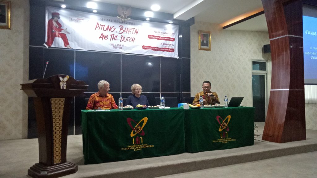 Dewantara, Serang – Sejumlah fakta-fakta yang mengandung unsur ‘kebaruan’ mencuat dalam Seminar Internasional : Pitung, Banten, and The Dutch yang digelar di Aula Gedung Rektorat Universitas Islam Negeri (UIN) Sultan Maulana Hasanuddin (SMH) Serang. Kegiatan yang dilaksanakan pada Kamis (17/1/2019) menghadirkan Prof. Dr. Roelof Jakob Van Der Veen dari University of Amsterdam dan Dr. Margreet Van Till dari University of Leiden.