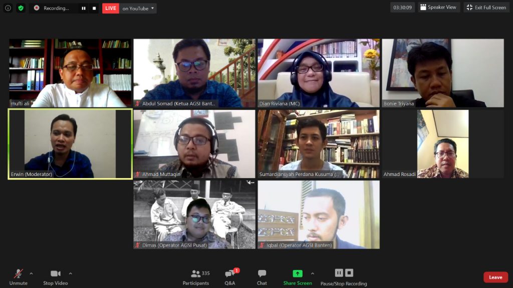 Dewantara – Asosiasi Guru Sejarah Indonesia (AGSI) Banten menyelenggarakan webinar berjudul “Revolusi 1926 di Banten: Pemberontakan Komunis atau Perang Sabil?” pada Senin (29/6/2020). Perhelatan webinar menggunakan aplikasi Zoom AGSI serta disiarkan live melalui channel youtube Asosiasi Guru Sejarah Indonesia. Pendaftar yang membludak membuat para peserta yang tergabung di Zoom hanya sebatas 500 orang dan selebihnya menyaksikan lewat youtube. Tercatat 1956 orang yang mengisi formulir pendaftaran dan selama webinar berlangsung 1500an absensi peserta diisi.